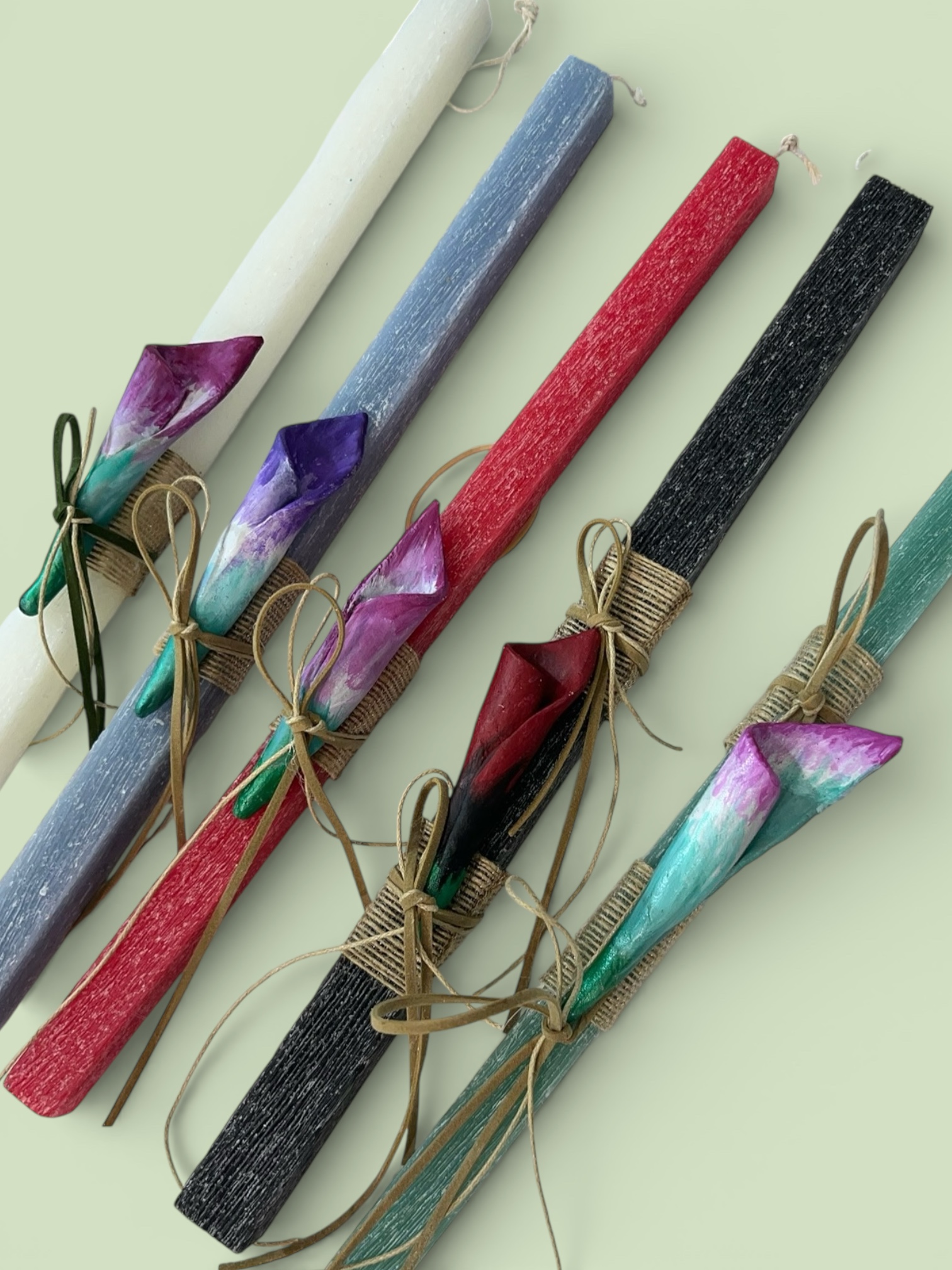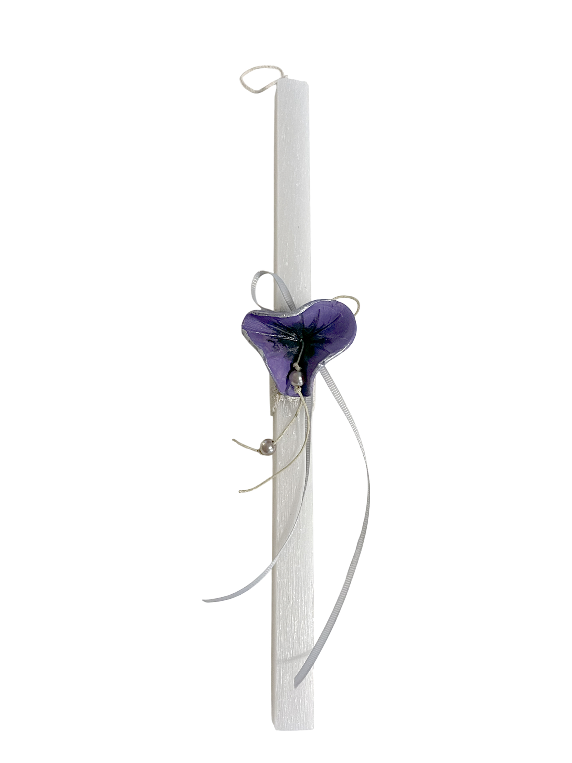 Λαμπάδα με πήλινο μωβ λουλούδι