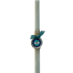 Περιγραφή: Λιτό σχέδιο λαμπάδας με χειροποίητο, πήλινο διακοσμητικό μάτι. Σε κερί 2Χ32εκ. ή 1,5Χ32εκ., ξυστό και αρωματικό.