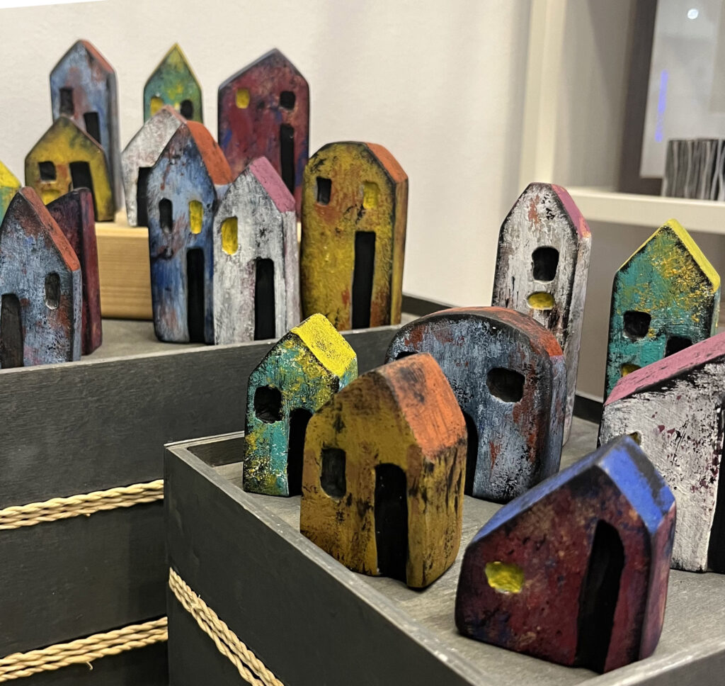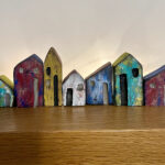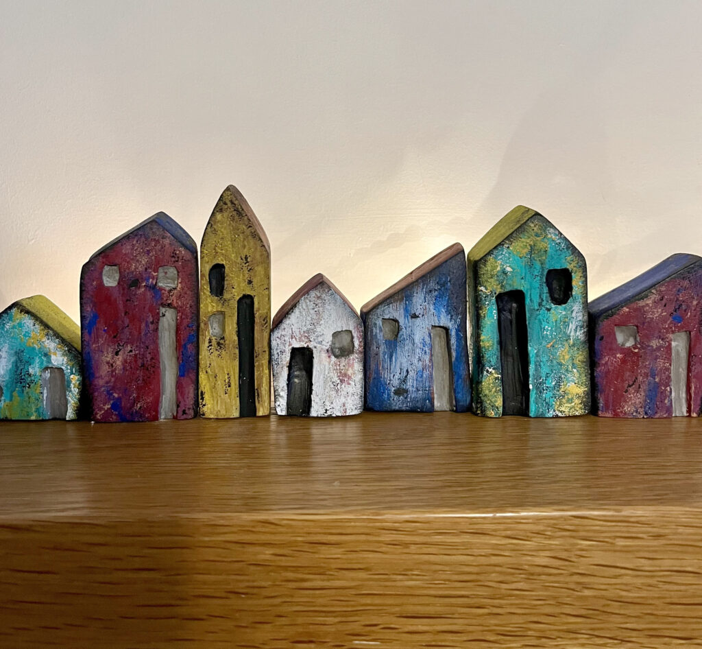 Περιγραφή: Διακοσμητικά σπιτάκια από πηλό, φτιαγμένα και ζωγραφισμένα στο χέρι. Ζευγάρι, ένα ψηλότερο με ένα πιο κοντό, σε όποιους χρωματικούς συνδυασμούς θέλετε.